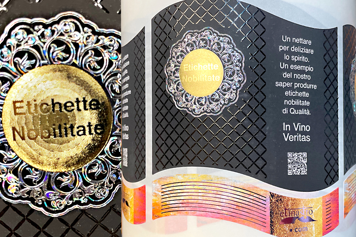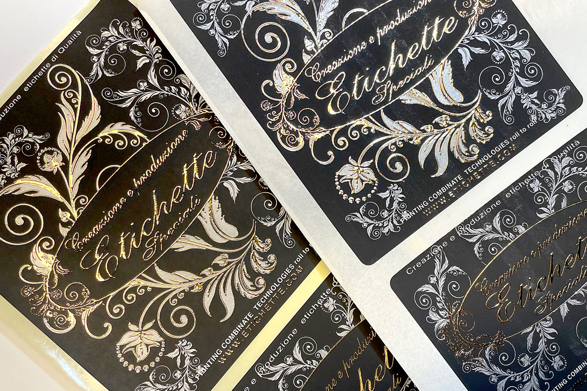 The hot stamp relief, also called “cast gold” gives a 3D appearance to lettering or logos on labels.